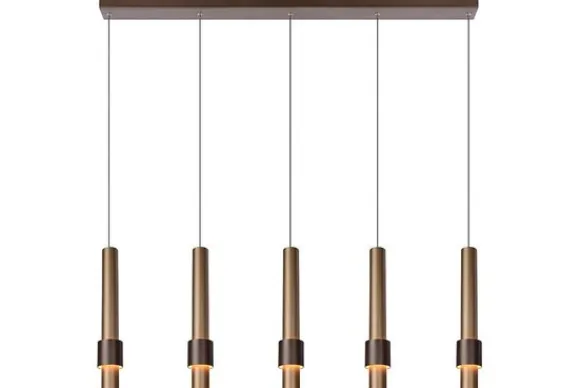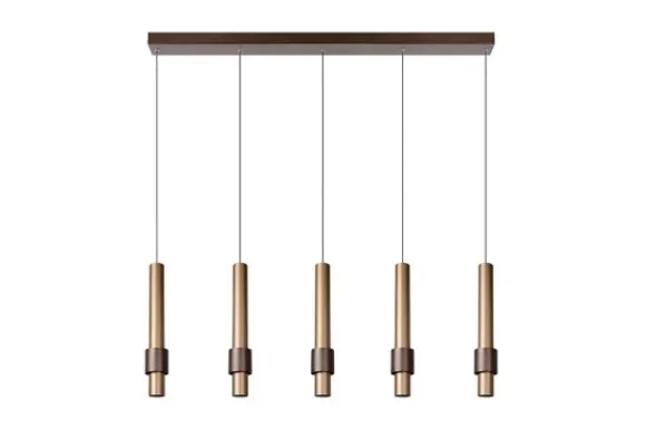 Hanglamp Margary van het merk Lucide brengt een luxueuze eyecatcher binnen in je interieur. Ze past perfect boven de eettafel van een hedendaags interieur, maar het uitgekiende materialenpallet en de kleurkeuzes blenden evengoed in een eerder landelijke stijl. De aluminium bevestigingsplaat vormt de basis voor de 5 slanke pendels. Aan elk van hen hangt een licht conische aluminium cilinder met daarin de lichtpunten verwerkt. In het meervoud, inderdaad. Want naast een downlighter helemaal onderin de cilinder plooit een tweede geïntegreerde ledlamp zich rond de elegante koker. Op zijn beurt omringd door een tweede cilinder. Het uitgekiende design van deze vormen en hun verhouding creëren een mysterieuze gloed. Het resultaat is een instant eyecatcher met sterallures.