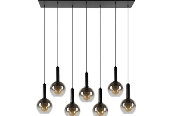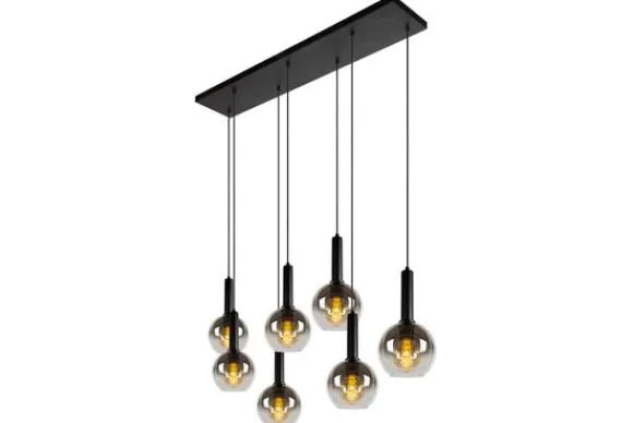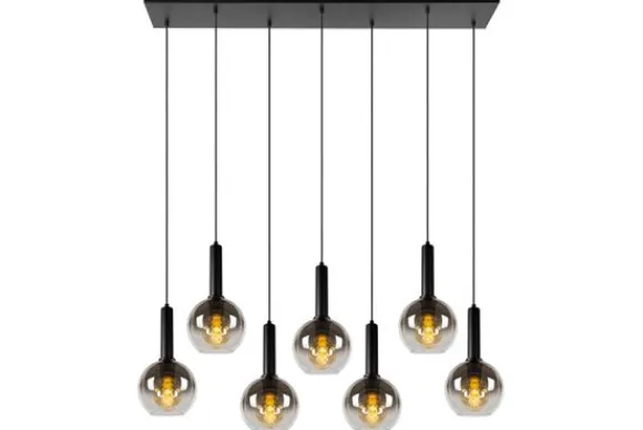 Hanglamp Marius van het merk Lucide houdt met zijn bolvormige glazen lampenkappen jou en je tafelgenoten gezelschap in stijl. Deze moderne hanglamp combineert hoogwaardige materialen zoals elegant fuméglas en metaal tot een eyecatcher van formaat. En dat mag je best letterlijk nemen. De lengte van deze luchter is namelijk 130 centimeter en de hoogte kan je zelf aanpassen van 70 tot 150 centimeter. Sluit de 7 lichtbronnen van Marius aan op een dimmer en laat iedereen zich meteen thuis voelen, op elk moment van de dag.