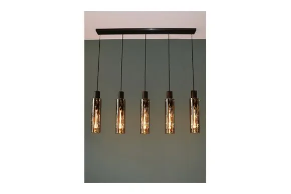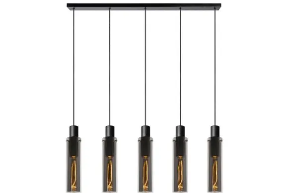 Hanglamp Orlando van het merk Lucide heeft vijf lichtpunten en dus vijf keer zoveel sfeer en stijl. Deze variant van de Orlando hanglamp is de perfecte compagnon in een moderne eetkamer. Het zwarte fuméglas geeft de kamer een mysterieuze en gezellige gloed. Zeker in combinatie met een buisvormige filament lamp, ook in fuméglas. Je laat Orlando optimaal stralen in de ruimte door hem op de juiste hoogte te hangen. Deze pas je zelf aan, van 120 tot 172 centimeter. Sluit aan op een dimmer en creëer voor elke eetgelegenheid de juiste sfeer.