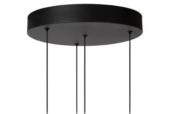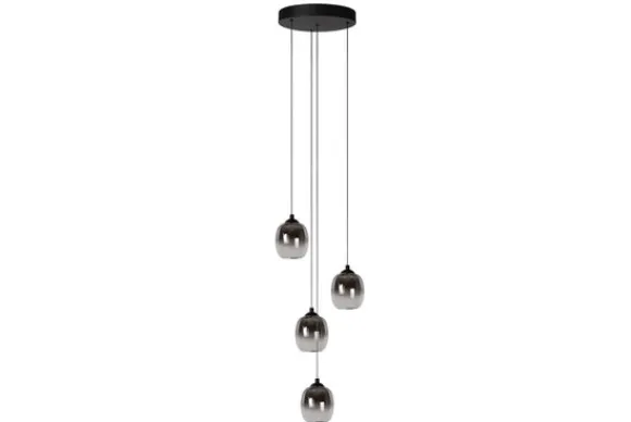 Hanglamp Tamino van het merk Lucide is een elegante keuze voor wie houdt van stijlvol design met een moderne twist. Met zijn vier bollen van gerookt glas en een minimalistisch zwart metalen plafondplaat, straalt deze lamp een verfijnde rust uit.
