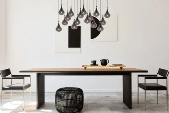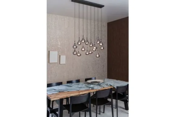 Hanglamp Tears van het merk Lucide is een krachtige spreidstand met gebalanceerde bollen in druppelvorm. De vormgeving van de glazen lampenkappen geven deze hanglamp meteen zijn naam. Ze zijn in 16-voud trapsgewijs gegroepeerd aan de metalen rechthoekige plafondplaat. Je kan iedere traan in hoogte laten variëren tussen 60 en 154 centimeter. De lengte van deze luchter bedraagt 106 centimeter Ideaal voor boven een moderne eettafel. De hanglamp wordt geleverd met dimbare ledlichtbronnen, voorzien van warm wit licht. Je kan Tears ook aansluiten op een dimmer voor nog meer sfeer.