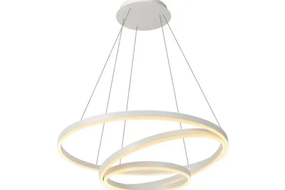Hanglamp Triniti van het merk Lucide heeft drie ringen van licht die quasi verstrengeld zijn maar toch afgescheiden van elkaar. Deze hanglamp heeft haar naam niet gestolen. Triniti staat voor de heilige drievuldigheid. Hang de ringen voor de installatie op de gewenste hoogte (minimum 60 en maximum 135 centimeter van het plafond). Dankzij de fijne verbindingskabels tussen de bevestigingsplaat en de lichtbronnen zelf lijken de lichtbannen te zweven boven je tafel. Na aansluiting op een dimmer bepaal je zelf de lichtsterkte van de geïntegreerde led’s.