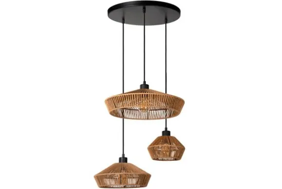 Hanglamp Yunkai van het merk Lucide heeft drie open rotan kappen die op verschillende hoogtes hangen en zo een speelse dynamiek creëren. De variërende diameters voegen extra karakter toe en zorgen voor een luchtige, natuurlijke uitstraling die prachtig past in zowel moderne als bohemian interieurs.