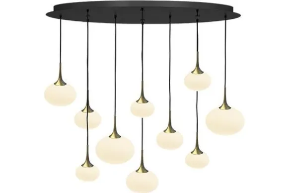 Hanglamp Paradiso van het merk Maretti Lighting is een indrukwekkende lamp. Deze bestaat uit een zwarte, ovale plafondbak met 10 opaal glazen bollen in verschillende maten, met daarop een zwarte houder. De snoeren zijn in hoogte verstelbaar tot maximaal 150 cm, dus je kan de lichtbronnen precies op de hoogtes hangen die jij wilt!