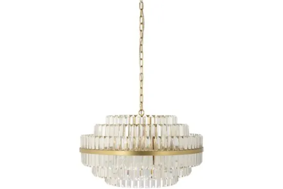 Hanglamp Desire 211531 van het merk Richmond Interiors is gemaakt van brass (staal in mat goud) in combinatie met kristal. De hanglamp is voorzien van zes lichtbronnen met een E14 (kleine) fitting en heeft een maximale wattage van 40 Watt. De hanglamp is dimbaar middels een externe dimmer en dimbare lichtbron. Door het kristal wordt er een unieke lichtinval gecreëert in jouw huis.