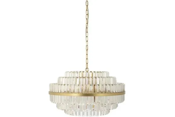Hanglamp Desire 211647 van het merk Richmond Interiors is gemaakt van brass (staal in mat goud) in combinatie met kristalglas. De hanglamp is voorzien van tien lichtbronnen met een E14 (kleine) fitting en heeft een maximale wattage van 40Watt. De hanglamp is dimbaar middels een externe dimmer en dimbare lichtbron. Door het kristal wordt er een unieke lichtinval gecreëerd.