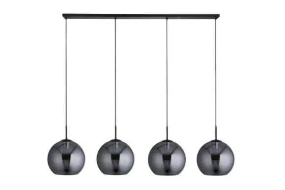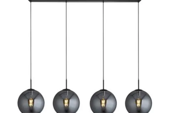 Hanglamp Amsterdam 1024-4SM van het merk Searchlight is een chique, industriële hanglamp. De lamp is voorzien van vier rookglazen lampenbollen met een metalen lampenbar. De lamp is dimbaar door middel van een externe dimmer en dimbare lichtbron. De lamp is tijdens montage in hoogte verstelbaar.