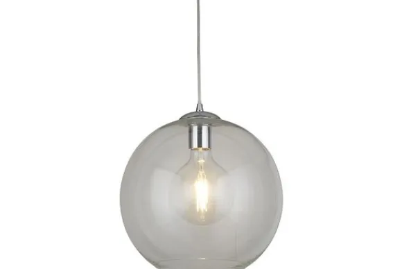Hanglamp Balls 1635CL van het merk Searchlight is een glazen bol met een zilveren teint. Het snoer is ook zilverkleurig. Dit model past in veel verschillende soorten interieurs. Deze lamp is 35 cm hoog, inclusief ketting is de lamp 120 cm hoog.