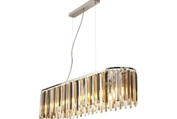 Hanglamp Clarissa 9838-8CC van het merk Searchlight is een opvallende, artistieke lamp. De royale verspreiding van het licht zorgt voor een verhelderende gloed die de hele kamer opwarmt. Aan de lamp hangt een mix van heldere glazen en amberkleurige chrome kristallen, die het licht prachtig op de muren reflecteren.
