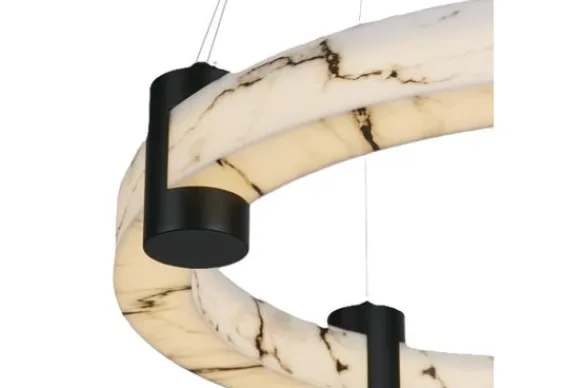 Hanglamp Moonbeam van het merk Searchlight heeft een opvallend ontwerp dat klassieke charme combineert met een moderne uitstraling. De zwarte metalen structuur en de marmerlook ring vormen een stijlvol geheel dat moeiteloos past binnen design, klassiek en modern ingerichte interieurs.