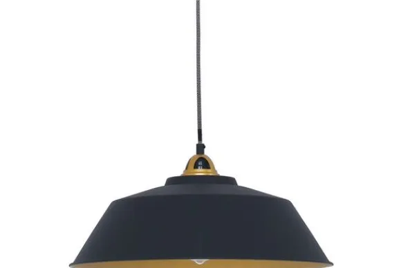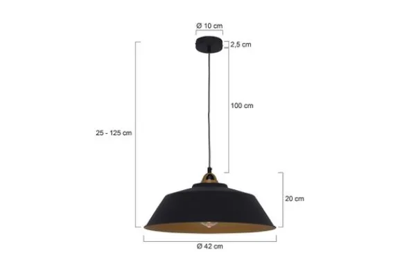 Hanglamp Mexlite Nové 1318ZW van het merk Steinhauer is een stoere en moderne lamp. Uniek door de combinatie van mat zwart, goud en strijkijzersnoer, waarin industrieel en modern perfect samenkomen.