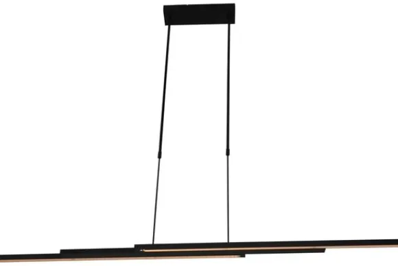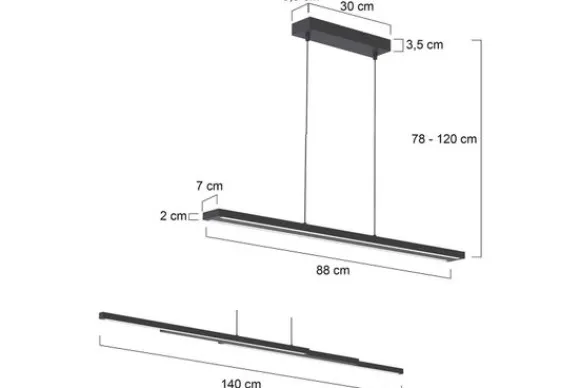 Hanglamp Zelena 7970ZW van het merk Steinhauer is een veelzijdige zwarte hanglamp met vier lichtpunten, twee aan de onderkant en twee aan de bovenkant, waardoor het licht op een unieke manier wordt verdeeld. De Zelena is voorzien van LED-strips van 2x 4 Watt met 800 Lumen aan de bovenkant en 2x 13 Watt met 2600 Lumen aan de onderkant. Met een pushdimmer aan de bovenkant zijn de lichten afzonderlijk instelbaar qua lichtkleur (van 2200 Kelvin (warm licht) tot 4000 Kelvin (koud licht)) en dimbaar, zodat je de perfecte sfeer kan creëeren. Tijdens de montage is de hanglamp in hoogte verstelbaar van 78 cm tot maximaal 120 cm. Het unieke van deze lamp is dat de breedte van de lamp ook variabel is, de strips zijn namelijk los van elkaar te verschuiven. Zo kan je de hanglamp boven een lange eettafel hangen en alsnog overal het gewenste licht krijgen! De breedte van de lamp is dan variabel van 88 cm tot 140 cm.