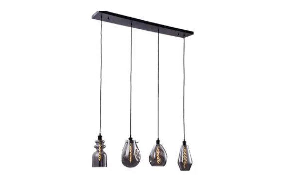 Hanglamp Cayden 4 van het merk Toms Luxury Lights is een 4-lichts zwarte plafondlamp. Door het staal in combinatie met smoked glas krijgt de lamp een luxueuze uitstraling. De lichtbronnen hangen in verschillende hoogtes en creëren daardoor een speels effect. Het glas zorgt voor een bijzondere lichtinval dat de ruimte laat stralen. Voor het mooiste effect kun je het beste een spiraal lichtbron in de lamp plaatsen. De lamp is voorzien van een E27 (grote) fitting. De plafondlamp is dimbaar middels een externe dimmer en een dimbare lichtbron. De lamp wordt inclusief lichtbron geleverd.
