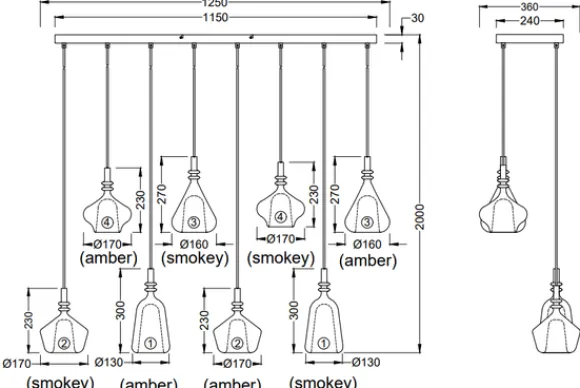 De plafondplaat is gemaakt van metaal en vormt een stevige basis voor de lamp. De verchroomde en amberkleurige glazen kappen geven de hanglamp een tijdloze uitstraling en zorgen voor een prettige lichtverdeling in de ruimte.