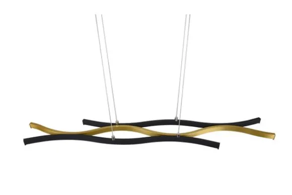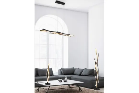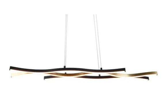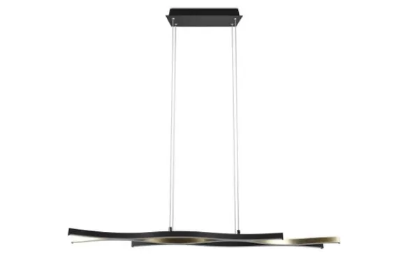 Hanglamp Blaze van het merk Trio Lighting is vervaardigd uit mat messing in combinatie met mat zwart metaal. De moderne en elegante lamp heeft een SWITCH-dimmer, waarmee de helderheid kan worden aangepast van 100% tot 50% en 25% door middel van een gewone lichtschakelaar. Daarnaast heeft de lamp een schakelaar, waarmee de lichtkleur (warm wit, neutraal wit of daglicht wit) kan worden ingesteld. Daarnaast beschikt de lamp over een moderne ledtechnologie die zich onderscheidt met een hoge lichtkwaliteit en energie-efficiëntie. De hanglamp is aanpasbaar in hoogte en heeft geïntegreerde lichtbronnen.
