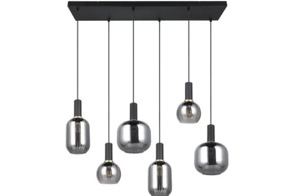 Hanglamp Diva van het merk Trio Lighting is een combinatie van mat zwart en verchroomd glas wat de lamp een elegante uitstraling geeft. De vorm en het ontwerp van het glas verspreiden het licht zacht en niet-verblindend, waardoor een mooi lichtspel ontstaat. Hang de lamp in de gang, boven je eettafel of hang er een aantal boven je eettafel. De lamp is een eye-catcher binnen elke woonstijl en geeft je woonruimte extra uitstraling waar je hem ook hangt. Deze lamp is exclusief de zes lichtbronnen met een E27 fitting. Voeg met gemak bij ‘Voeg toe aan winkelmand’ je lichtbronnen toe.