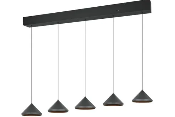 Hanglamp Laguna 336210532 van het merk Trio Lighting is een moderne blikvanger met vijf kegelvormige lampenkappen in matzwart metaal. De strakke belijning en de subtiel afgeronde vormen geven de lamp een verfijnde, eigentijdse uitstraling. Perfect boven de eettafel of het kookeiland, waar de geïntegreerde LED-verlichting zorgt voor een gelijkmatige en sfeervolle lichtverdeling.