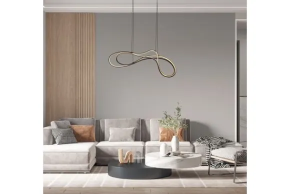 Hanglamp Nala van het merk Trio Lighting heeft een gebogen design bestaande uit twee doorlopende verlichtingselementen. De lamp is vervaardigd uit metaal in de kleur mat zwart en heeft een geïntegreerde SWITCH-dimmer, hierdoor is het mogelijk om de helderheid in drie niveaus (100%, 50% en 25%) aan te passen met behulp van een conventionele lichtschakelaar. Door middel van de DIP SWITCH kunnen er drie lichtniveau’s (warm wit neutraal wit en daglicht wit) direct via de lamp ingesteld worden. De lamp kan variabel in hoogte aangepast worden.