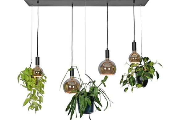 Hanglamp Bryggen 2805 9005 van het merk Ztahl is een moderne plantenlamp met vier E27 fittingen zonder kap. Hierdoor kun je zelf bepalen welke lichtbron je plaatst en hoeveel sfeer de lamp geeft. De open fittingen bieden de mogelijkheid om een decoratieve lichtbron te kiezen, zoals de afgebeelde Segula lichtbron.