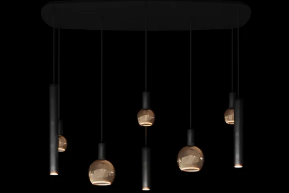 De lamp is voorzien van vijf E27-fittingen en drie GU10-fittingen. Dankzij deze mix van lichtpunten ontstaat er een dynamisch lichteffect dat zowel functioneel als sfeervol is.