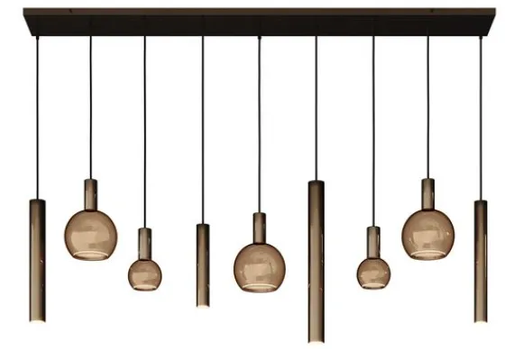 De lamp is voorzien van vijf E27-fittingen en vier GU10-fittingen. Door deze combinatie van lichtpunten ontstaat er een dynamisch lichteffect dat zowel praktisch als sfeervol is.