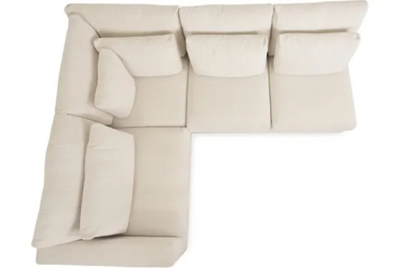 Hoekbank Merel van het merk Eijk Lifestyle is een hedendaagse en tijdloos elegante hoekbank met een luxe uitstraling. De koudschuim vulling met bonellvering zorgt voor een super comfortabel zitcomfort en blijft strak doordat de vering steeds terug in model veert.
