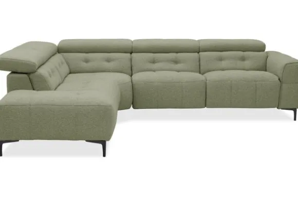 Bankstel Ontario van het merk Domicil is een ruime hoekbank met een moderne uitstraling. De bank heeft brede zitplaatsen, zachte rugkussens en verstelbare hoofdsteunen voor extra steun. De hoge, slanke pootjes geven de bank een luchtige look. Dankzij de strakke lijnen en comfortabele zitting is dit een bank waar je heerlijk op kunt ontspannen én die er stijlvol uitziet in je woonkamer.