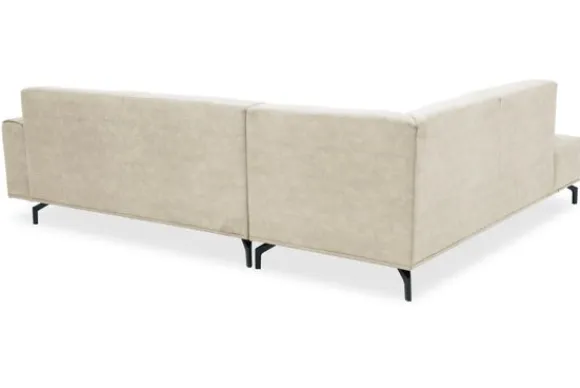 Hoekbank Bastiaan van het merk Canape Marant heeft een strakke vormgeving met subtiele rondingen in de rug- en armleuningen die zorgen voor een uitnodigend karakter. De zwarte metalen poten tillen de bank letterlijk en figuurlijk naar een hoger niveau en geven een luchtig effect.