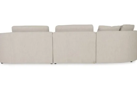 De bank heeft een knusse uitstraling dankzij de ronde vormen en dubbele rugkussens. De armleuning loopt naadloos door in de rugleuning, dit geeft een moderne look. De zitting is gevuld met koudschuim wat voor een stevige zit zorgt. De rugkussens hebben een vulling van koudschuim met een bovenlaag van siliconenvezels, hierdoor zijn deze wat zachter.