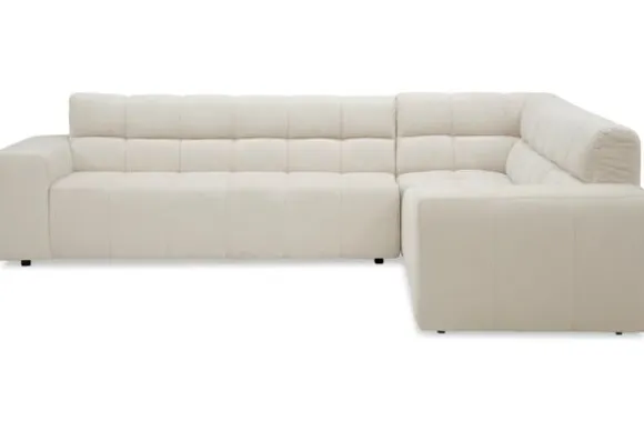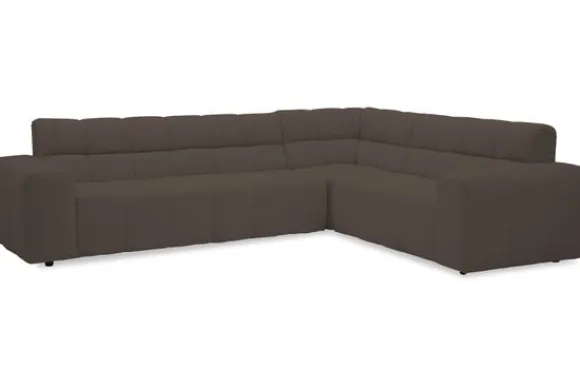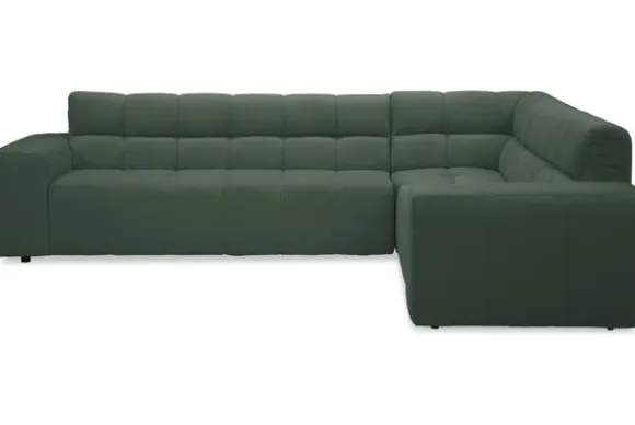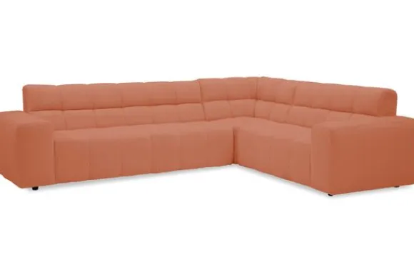 Hoekbank Cantonada van het merk Kenzo combineert luxe met veelzijdigheid. De diepe zit en zachte stoffering zorgen voor ultiem comfort, terwijl de moderne vormgeving met zijn blokstructuur de bank een stijlvol karakter geeft.