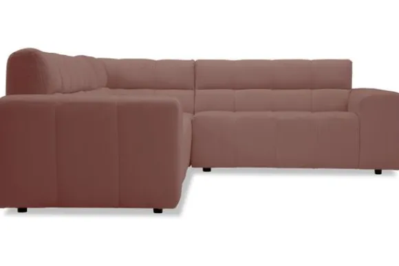 Deze hoekbank is verkrijgbaar in een breed scala aan kleuren en materialen. Denk aan rundleder of stoffen als velvet en bouclé. Hierdoor past de bank in uiteenlopende interieurs.