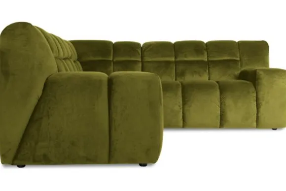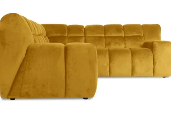 Je kunt kiezen uit verschillende materialen, waaronder stoffen als velvet en boucle. Daarnaast is de bank verkrijgbaar in uiteenlopende kleuren.