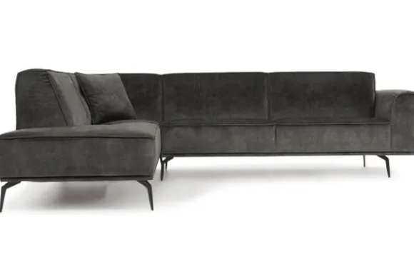 Hoekbank Iris van het merk Design Italia is beschikbaar in alle kleuren en in verschillende materiaalsoorten zoals stof, velvet en rundleder. Je kunt kiezen uit diverse afmetingen. Ook kun je kiezen voor een gladde rugleuning of intrekkiningen in de rug en voor een geknepen naad of een dichte naad. Dit is een strakke bank door de rechte, vaste kussens. De bank staat op metalen knikpoten waardoor het een luchtige uitstraling heeft.