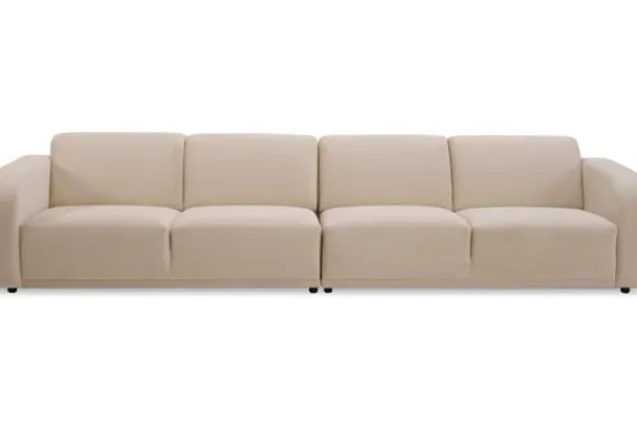 Een bijzonder kenmerk is dat de 2.5, 3, en 3.5-zitselementen met en zonder armleuningen voorzien kunnen worden van een elektrisch uitschuifbare zitting. Deze subtiele innovatie vergroot de zitruimte met maar liefst 23cm, wat zorgt voor een extra dimensie van comfort met een simpele druk op de knop.