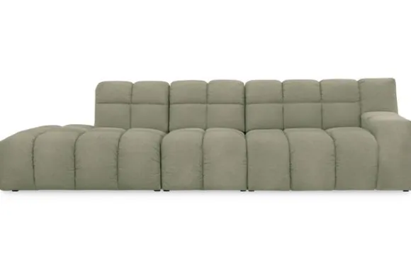 Je kunt kiezen uit verschillende materialen, waaronder stoffen als velvet en boucle. Daarnaast is de bank verkrijgbaar in uiteenlopende kleuren.