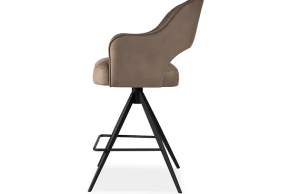 Barkruk Kampy van het merk Vie Chic is verkrijgbaar in alle kleuren en verschillende materiaalsoorten zoals stof, velvet en rundleder. Het ontwerp combineert een hedendaags zitcomfort met een speelse knipoog naar industrieel design. De zitting voelt zacht aan, heeft een elegante ronding en biedt dankzij de armleuningen een luxe uitstraling.