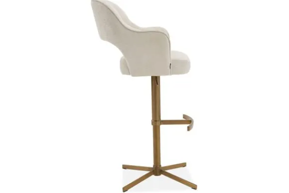 Barkruk Lardy van het merk Opulenza is een stijlvolle en moderne barkruk met ronde vormen, een gladde rugleuning en een metalen sterpoot met voetensteun. De kruk is 360 graden draaibaar, waardoor je moeiteloos beweegt aan keukeneiland of bartafel.