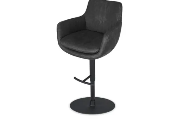 Barkruk Nicola van het merk Dining & Chill is verkrijgbaar in alle kleuren en verschillende materiaalsoorten als stof, rundleder en kunstleder. Deze barstoel heeft een industriële uitstraling dankzij de zwart metalen poot. De rugleuning en de armleuningen hebben mooie ronde vormen. Ook heeft deze barkruk een voetensteun op de poot.