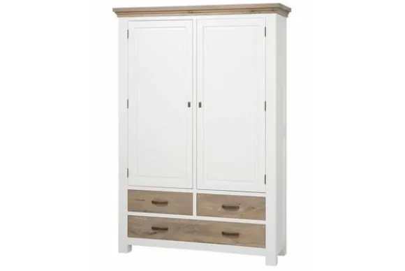 Bergkast Parma MC 0114 van het merk Tower Living wordt geleverd in de kleur wit. De eiken delen worden licht geborsteld en afgewerkt met een olie. Je kunt dit hout makkelijk schoonmaken met een zachte vochtige doek. Deze kast heeft diverse opbergmogelijkheden, namelijk drie lades en twee deuren.