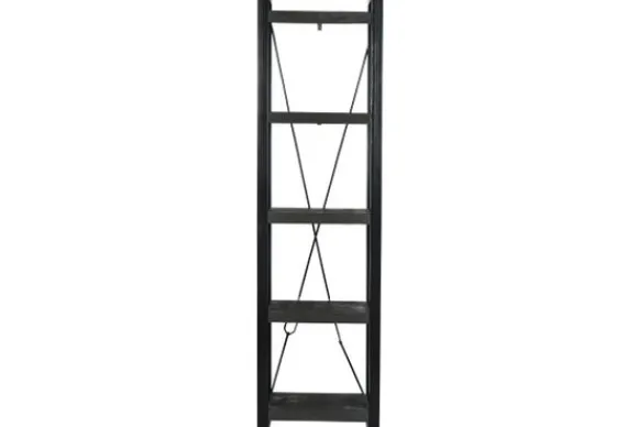 Boekenkast Norris van het merk Livingfurn is een open kast die geschikt is voor gebruik in de woonkamer, werkkamer of eetkamer. Door de combinatie van mangohout en zwart gecoat staal past deze boekenkast goed binnen een modern of industrieel interieur.
