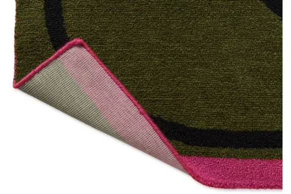 Buitenkleed Linear Stem Olive Outdoor 464407 van het merk Orla Kiely is een echte sfeermaker voor binnen én buiten. Het design is strak en speels tegelijk, grote zwarte lijnen vormen een bladmotief op een olijfgroene ondergrond, afgewerkt met een roze rand.