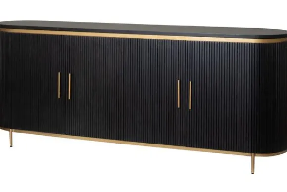 Dressoir Rivello NL 0026 van het merk Tower Living is gemaakt van mangohout. Mangohout kun je herkennen aan de vele kleurschakeringen en ongelijkheden in het oppervlakte van het hout, waardoor geen enkel meubelstuk hetzelfde is. De kleuren in mangohout kunnen variëren van lichte- tot donkere tonen. Het dressoir heeft 4 deuren. De zwarte kleur met gouden accenten is een stijlvolle en elegante toevoeging aan elk interieur.