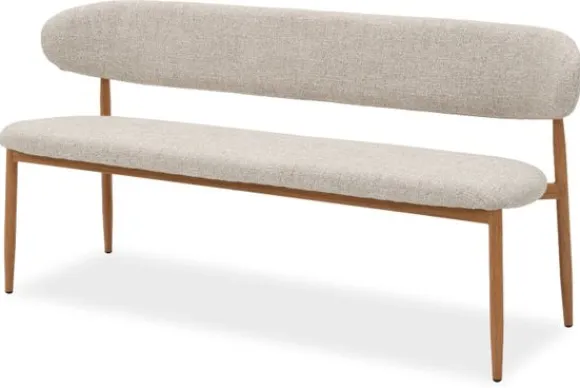 Eetkamerbank Kumo biedt een prettige zit dankzij de zachte stof en comfortabele rugleuning. Verkrijgbaar in twee maten, zodat je de ideale lengte kunt kiezen voor jouw eettafel.
