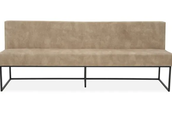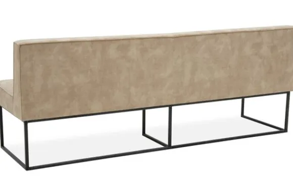 Eetkamerbank Porta van het merk Dutch Design is een stijlvolle eetkamerbank met een gladde rug. Eetbank Porta wordt standaard geleverd met zwart metalen poten.
