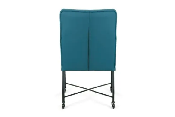 Eetkamerstoel Stromae van het merk France is verkrijgbaar in alle kleuren en in materiaalsoorten zoals stof, kunstleder en rundleder. Deze eetstoel wordt standaard uitgevoerd met skatewieltjes, waardoor je de stoel makkelijk kunt verplaatsen. Deze uitvoering van Stromae heeft armleuningen, maar de stoel is ook beschikbaar zonder armleuningen. Stromae heeft een stoer uiterlijk door de metalen poten en geknepen naden. In de voorkant van de rugleuning zit één horizontaal stiksel en aan de achterkant loopt een verticaal stikstel.