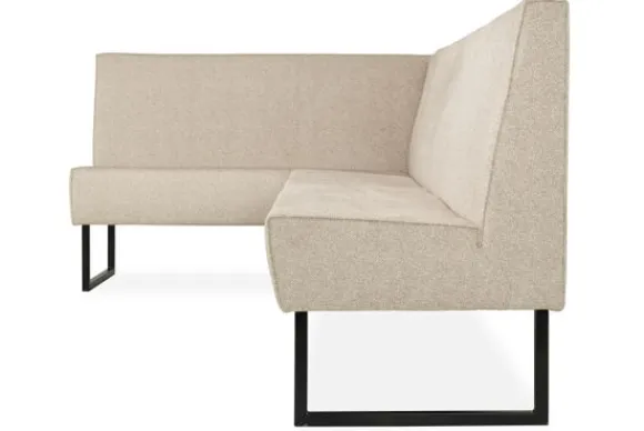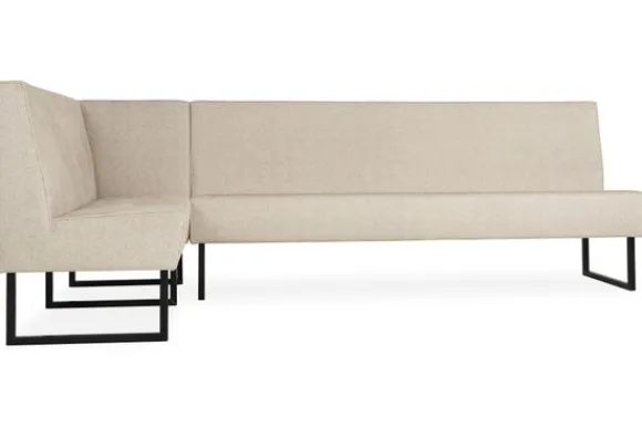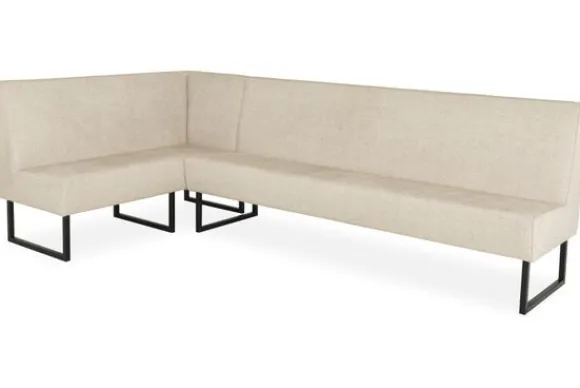 Deze eetkamerbank wordt standaard uitgevoerd met metalen sledepoten. Bij de metalen en houten poten wordt de bak ingekort waardoor de zithoogte hetzelfde blijft.