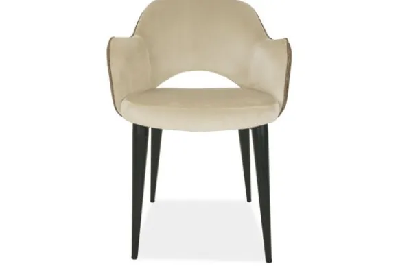 Eetkamerstoel Giovanna 210412 Alaska Stone van het merk Richmond Interiors heeft een chique uitstraling. De stoel is gestoffeerd met Quartz Khaki en Alaska 102 Stone. De stoelpoten zijn van metaal, in de kleur zwart. Velvet is makkelijk te reinigen, slijtvast en goed bestendig tegen bijvoorbeeld nagels van huisdieren.
