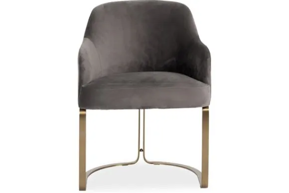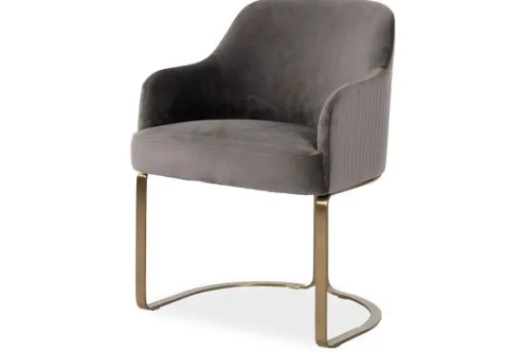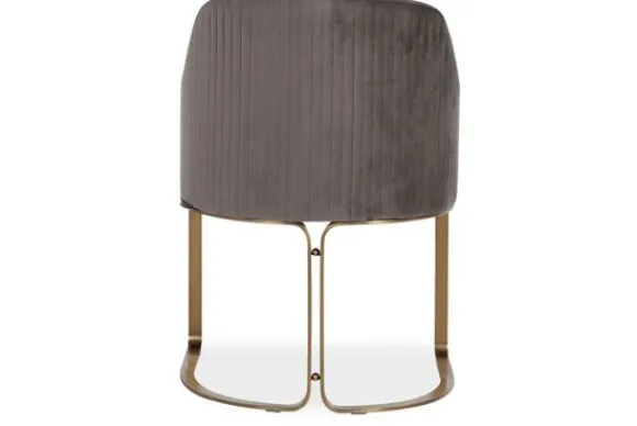 Eetkamerstoel Hadley 210457 Stone Velvet van het merk Richmond Interiors is een luxe stoel. Het heeft deze uitstraling te danken aan de brass (staal in mat goud) poten en de Quartz Stone 101 stoffering. Over de buitenkant van de stoel lopen vertikale stiksels, dit geeft het een uniek randje die mooi past bij de poten. Velvet is een fantastische materiaalkeuze, het is namelijk zeer slijt- en kleurvast. Daarnaast kan het bijvoorbeeld goed tegen nagels van huisdieren!