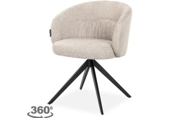 Eetkamerstoel Olivia 212903 van het merk Richmond Interiors is gestoffeerd met Miami 01 Natural. Miami is een fijn geweven stof met een lichte glanzende vleug en ziet er bij elke lichtinval anders uit. De elegante stof heeft een regelmatige structuur en voelt prettig aan. De rugleuning loopt langzaam over in armleuningen, hierdoor heb je een goed zitcomfort. De stoel is 360 graden draaibaar, hierdoor heb je de vrijheid om jezelf in iedere gewenste richting te draaien.