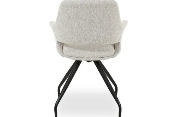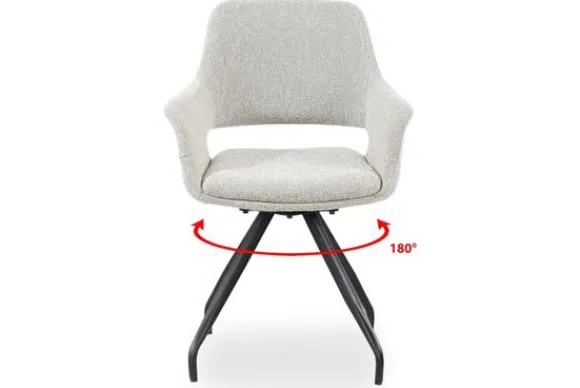 Het zwarte metalen onderstel met slanke poten geeft de stoel een verfijnde, luchtige uitstraling. De 180 graden draaibare zitting maakt deze stoel extra functioneel en gebruiksvriendelijk. Je draait moeiteloos mee aan het gesprek, zonder de stoel te hoeven verschuiven.